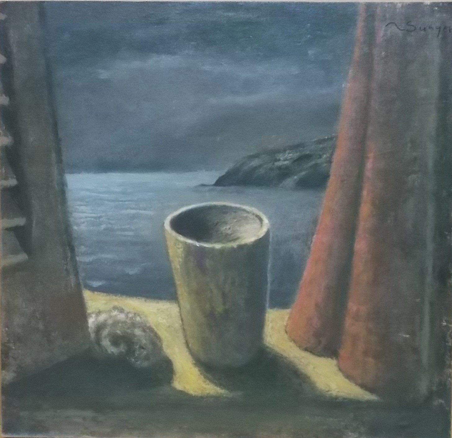 Pero también es verdad que Sunyer juega con otra emoción, la más evocadora e imaginada, y cuando esta inquietud le mueve a pintar se encierra en la soledad obligada del estudio y se aleja en cierto modo de aquella tradición. Su pintura se llena de sombras, de calles retorcidas que encierran una atracción magnética para quien las observa, de nocturnos casi escenográficos, de silenciosas composiciones en las que los elementos dejan de ser objetos materiales y se transforman en tiempo detenido; de ventanas abiertas al exterior que hacen pensar más en lo que hay dentro.